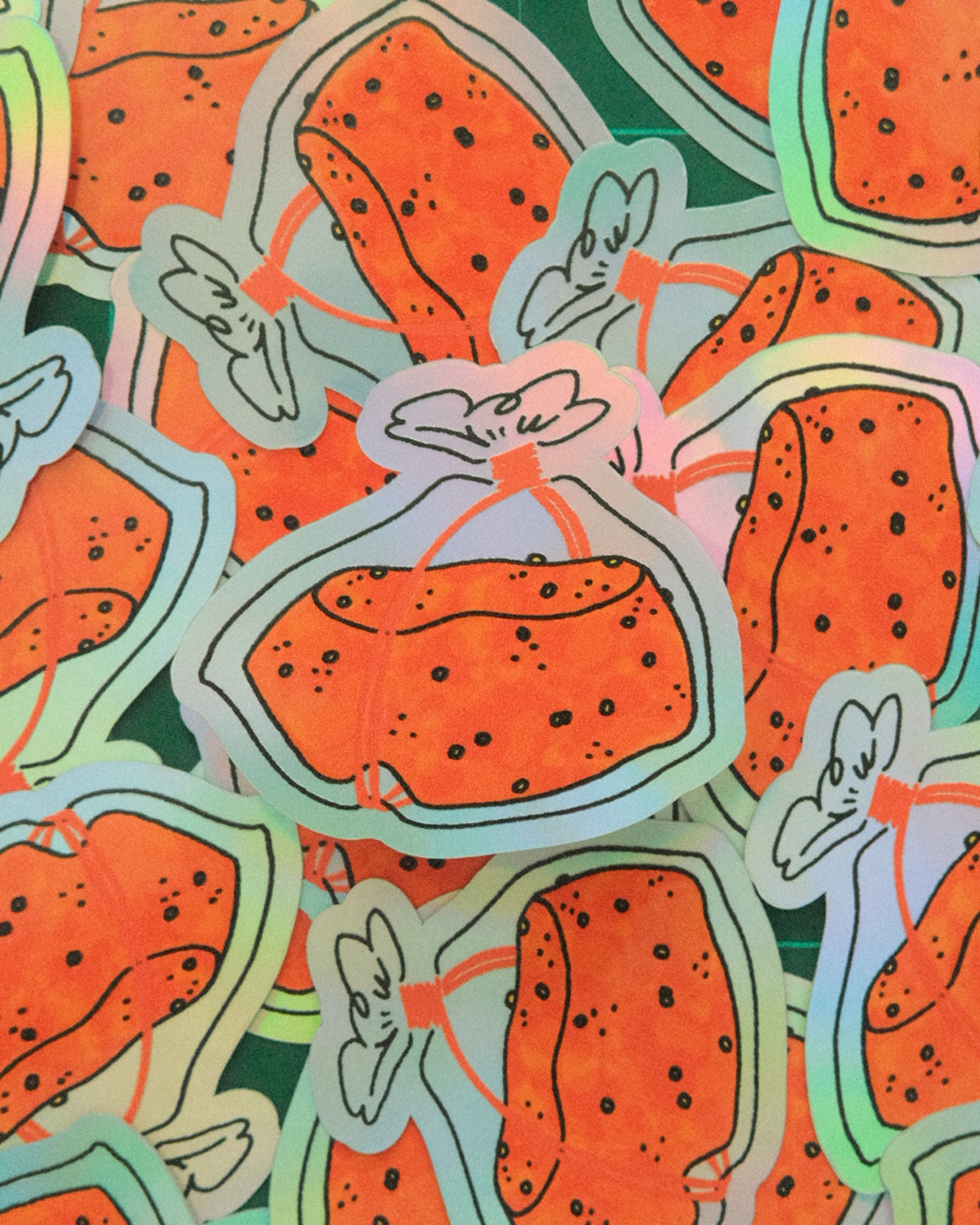 - Waterproof holographic vinyl stickers, with a mix of matte & glossy textures
